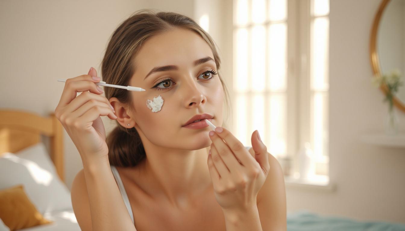 Lip-safe spot treatments can be used carefully. Apply only to the skin, not inside the mouth. Avoid heavy or scented lip products.