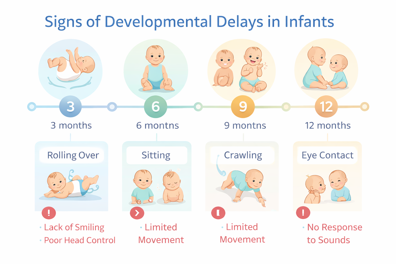 That doesn’t automatically mean a developmental problem is present. Still, when these behaviors continue for several months, doctors may want to explore whether they could be developmental milestones red flags in infants.